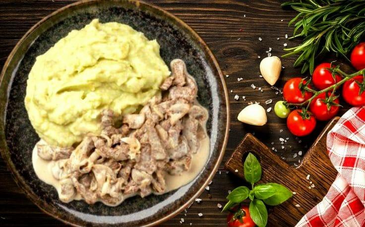 Состав: картофель, молоко, говядина, сливочный соус, соль, перец черный молотый Объем 350 гр