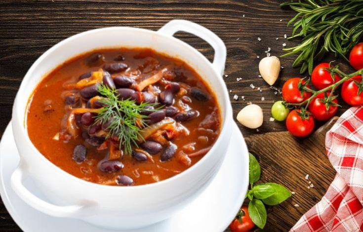 Состав: говяжий бульон, мякоть говядины, морковь, лук, томатная паста, фасоль красная, картофель, соль, перец черный молотый, зелень Объем 300 мл