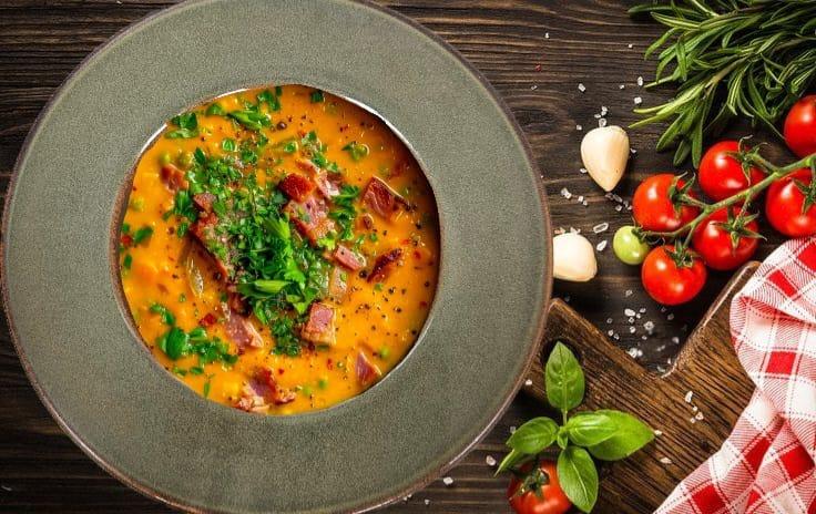 Состав: говяжий бульон, горох колотый, копчености, морковь, картофель, лук, соль, перец черный молотый Объем 300 мл