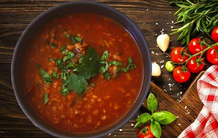 Состав: говяжий бульон, говядина, рис, лук, томатная паста, чеснок, соус ткемали, кинза, хмели-сунели, соль, перец красный чили, перец черный молотый Объем 300 мл