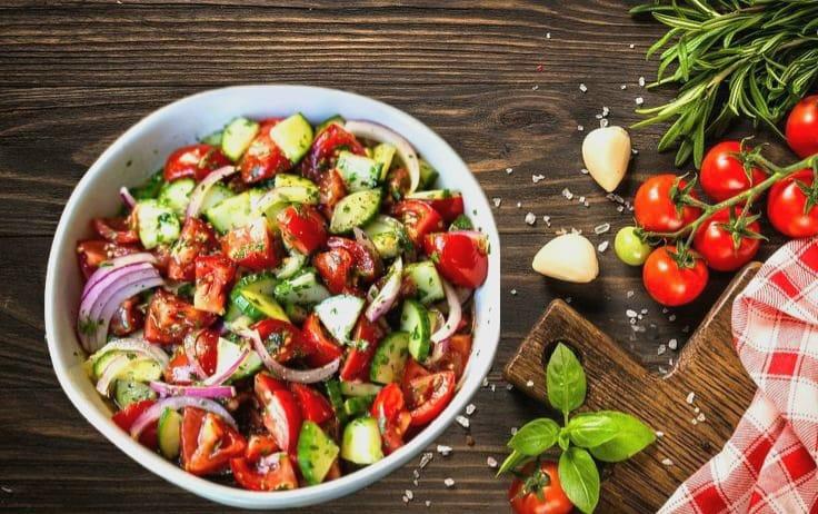 Состав: помидоры, огурцы, лук красный, оливковое масло, соль, перец черный молотый Объем 150 гр