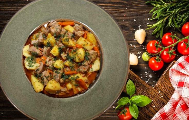 Состав: мякоть говядины, картофель, морковь, кабачки, лук, томатная паста, соль, перец черный молотый. Объем 350 гр