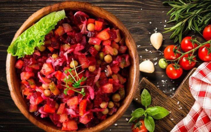 Состав: свекла, морковь,картофель, огурцы маринованные, горошек, соль, растительное масло Объем 150 гр